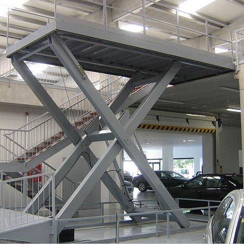 固定式升降機臺面大小適中,其主要適用于倉庫、車間與汽車、貨柜之間的貨物裝卸,無需設置貨臺、鋼架,直接從地面起升裝卸。可根據客戶現場環境或提供的數據訂做,根據升高可分為單剪叉式升降機、雙剪叉式升降機,多剪叉式及雙跨式升降機。升降機根據載重來匹配相應大小壁厚的矩形管做支架;相應大小流量的液壓泵站做動力單元;相應大小缸徑的油缸做動力載體。根據使用的頻率可換裝無油自潤滑銅套及相應配件。