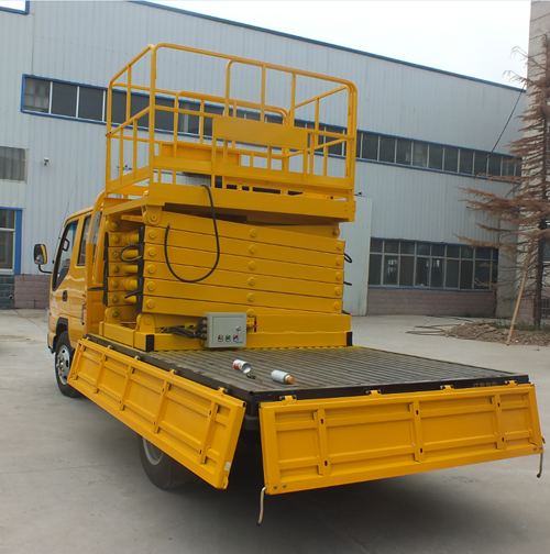 車載剪叉式升降機是整合汽車及剪叉式升降機的優勢于一身的新型高空作業設備。車載剪叉式升降機以小型貨車(汽車)或電瓶車為載體,移動靈活迅速,操作簡單,作業范圍廣。車載剪叉式升降機采用剪式升降結構,剪叉結構采用優質矩形錳鋼管制作,整體強度高,載重量大,升降穩定性好。設備可以利用汽車引擎動力驅動升降機。如果汽車自身不配備取力器接口。升降機的升降動力也可以根據客戶要求選配外接電源或者蓄電池的動力組合,也可以選用柴油機,發電機等動力裝備。若汽車不方便安裝任何動力系統,那么客戶還可以安裝手動升降裝置。車載剪叉式升降機以其汽車移動靈活迅速,操作簡單,作業范廣的優勢,廣泛用于城建、油田、交通、市政、室外廣告等行業。