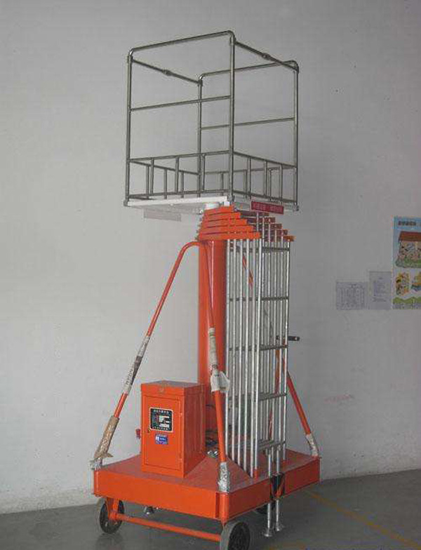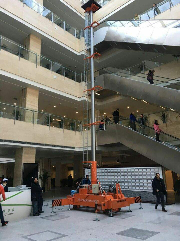 套缸式升降平臺(tái)為多級(jí)液壓缸直立上升,液壓缸高強(qiáng)度的材質(zhì)和良好的機(jī)械性能,塔形梯狀護(hù)架,使升降平臺(tái)有更高的穩(wěn)定性。即使身處50米高空,也能感受其優(yōu)越的平穩(wěn)性能。主要用于電力線路、照明電器、高架管道等安裝維護(hù),高空清潔等單人工作的高空作業(yè)。主要產(chǎn)品分為:?jiǎn)翁莘佬D(zhuǎn)、雙梯防旋轉(zhuǎn)、可傾斜式液壓升降平臺(tái)。