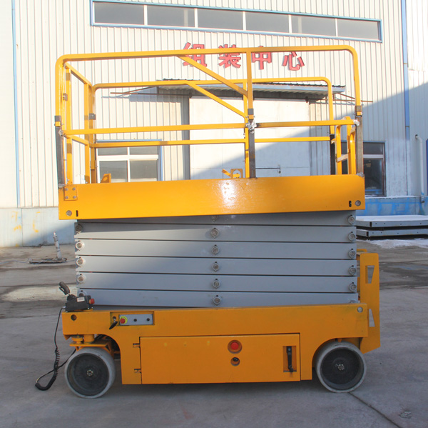 自行剪叉式升降機具有自動行走功能,整機一體式設計,內置電瓶電源,滿足在不同工作狀態下,不需外接電源,不需外來動力牽引即可升降自如,而設備的行走轉向也只需一人便可完成。操作人員只需掌握好設備前的控制手柄即可完成設備前進、后退、轉向、快、慢速行走和上下等動作。自行剪叉式升降平臺移動靈活,操作方便、省工、省力令高空作業更方便快捷,是現代企業高效安全生產之理想高空作業設備。