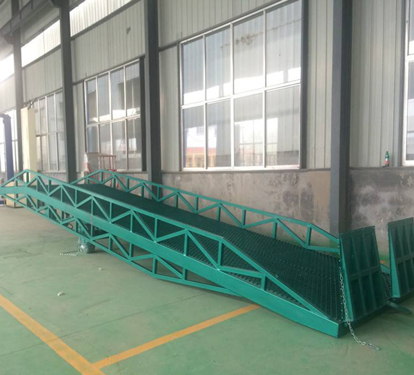 移動式液壓登車橋產品采用人工液壓動力,不需外接動力電源,只需單人操作,就可以實現貨物的安全快速裝卸,節省時間和人力資源。它可使企業減少大量勞動力,成倍提高裝卸作業效率,加快貨物流通速度,獲取更大經濟效益。移動登車橋被廣泛應用于無裝卸設備的貨臺及流動裝卸場所,是與叉車配合使用的貨物裝卸輔助設備。并可以根據不同的車型及裝車過程車廂的高度變化進行調節。廣泛應用于大型化工工廠運輸備料、物流集散中心運輸貨物、港口碼頭上下集裝箱,移動式液壓登車橋廣泛的應用各種物流或者工礦企業的裝卸貨物的工作當中。