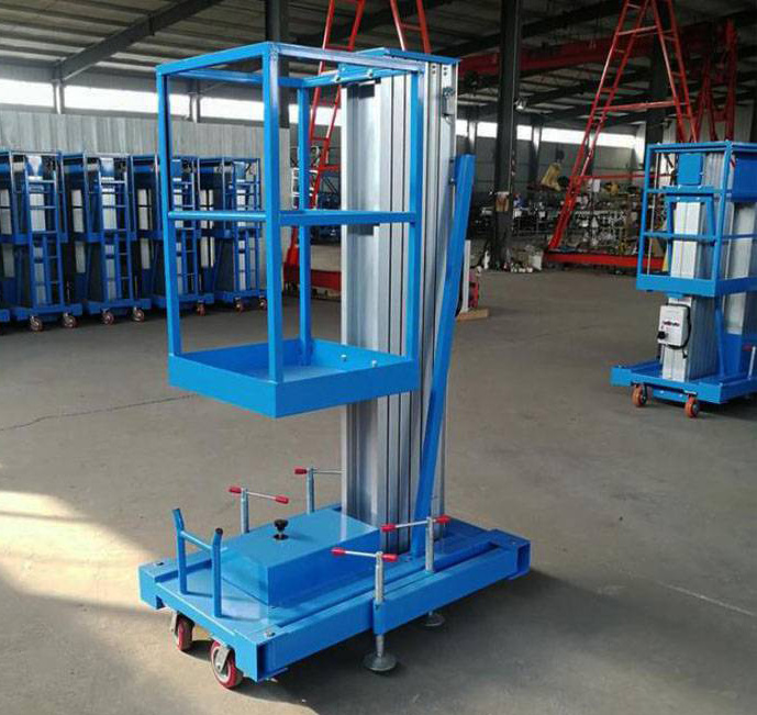 6、雙柱鋁合金升降機(jī)高度從8-12米不等,載重100-300KG,適合單人或者雙人高空作業(yè),自身只有幾百KG單人移動(dòng)很方便。